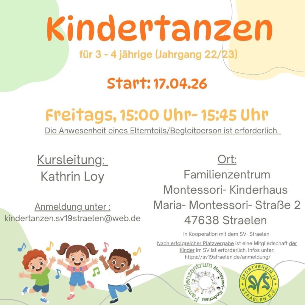 Endlich wieder im Angebot – Kindertanzen beim SV 19 Straelen. Jetzt schnell anmelden und einen der letzten Plätze sichern.